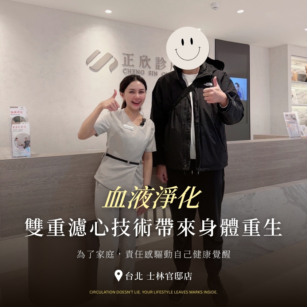 彭先生,33歲,從事木工製造業,家族有糖尿病和高血壓病史。四個月前的健檢報告讓他大吃一驚,膽固醇偏高,三酸甘油脂高達700多,看到年幼的女兒,他突然感受到深深的責任感,想到如果身體出狀況,將無法陪伴她長大,心中充滿了感慨。於是透過網路資訊尋求專業保養管道,前往身體保養廠-正欣診所。